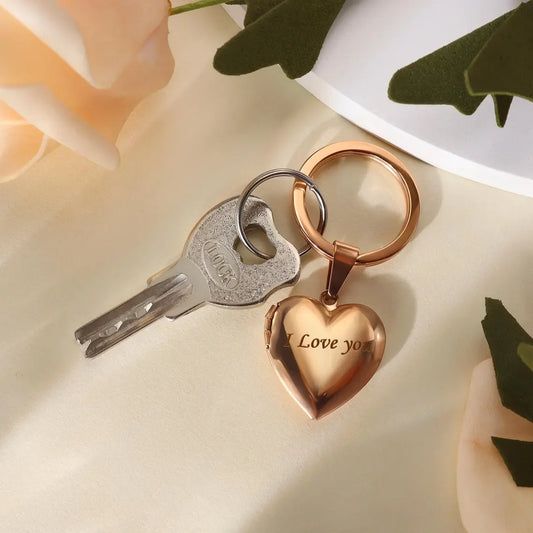 【写真&文字刻印】ハート型 フォト ロケット キーホルダー