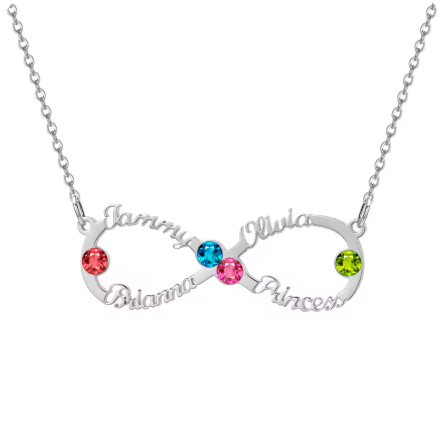 輝く無限大(∞)形のオリジナル文字と誕生石入れ ネックレス