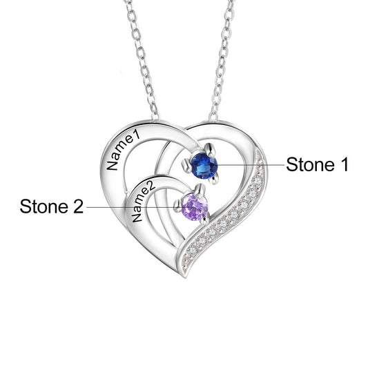 純度92.5%スターリングシルバー誕生石装飾と名前刻印のカスタム ハート型ペンダントネックレス