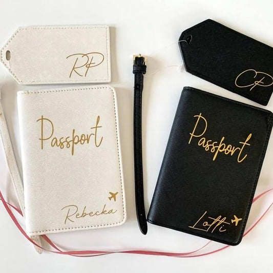 レザー名前入れオリジナルカスタムパスポートケース&ラゲッジタグ