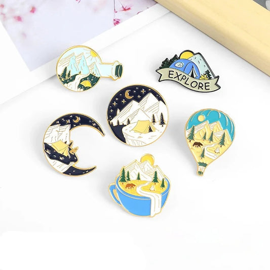 登山・アウトドアの思い出の写真で作るオリジナルエナメルピン(3点セット)