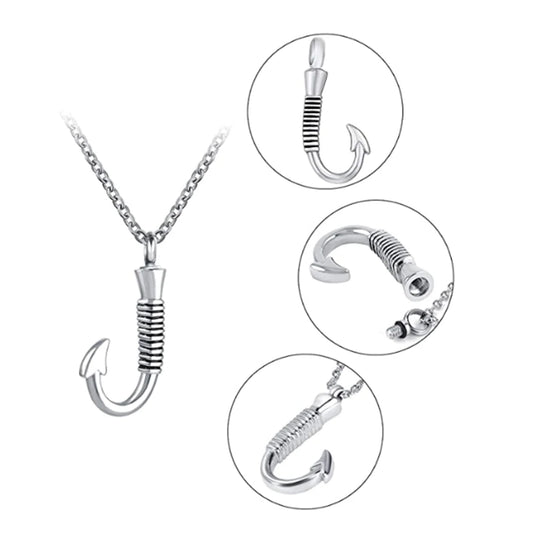 釣り愛好家のための釣り針モチーフとカスタム刻印のペンダントネックレス