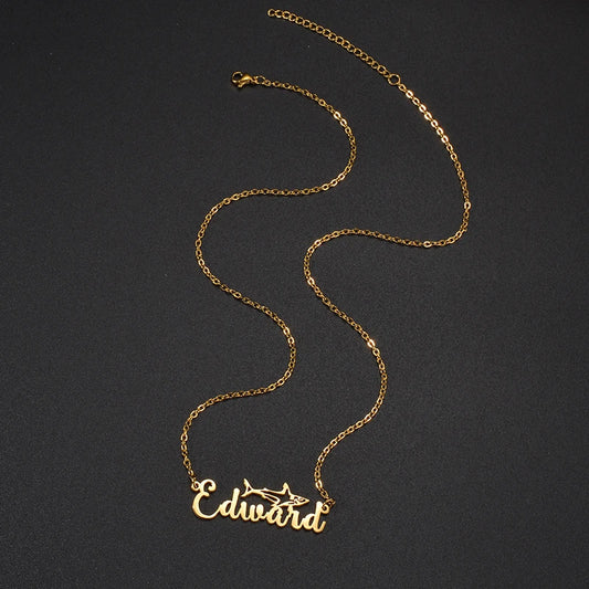 サカナ モチーフのカスタム名前切り抜きペンダントネックレス