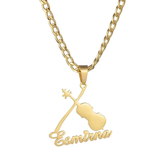 バイオリンモチーフ ネーム切り抜きカスタムペンダントネックレス