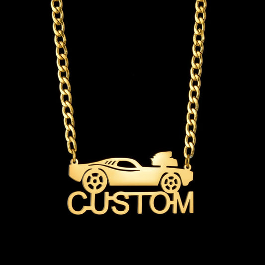 車・バイクをモチーフにしたカスタムネーム切り抜きペンダントネックレス