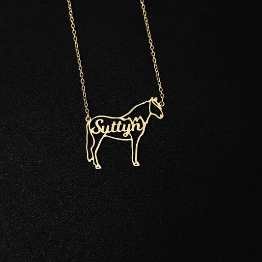 躍動する馬のペンダントと名前切り抜きカスタムペンダントネックレス