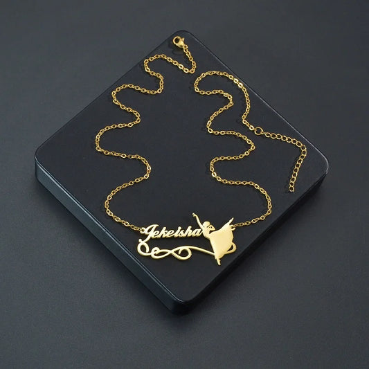 バレリーナの妖精が踊るネーム切り抜きカスタムペンダントネックレス