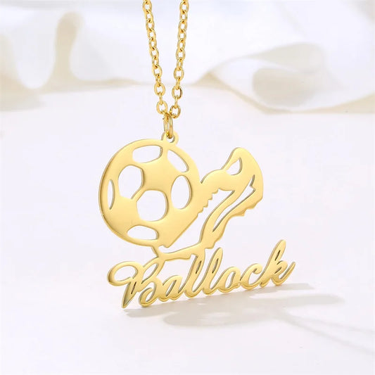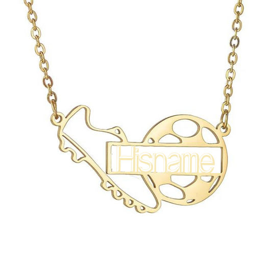 【中央名入れ】サッカーボール&スパイク 切り抜きカスタムネックレス