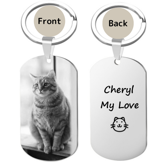 好きな写真 文字刻印のオリジナル オーダーメイドキーホルダーネームタグ|白黒写真仕様
