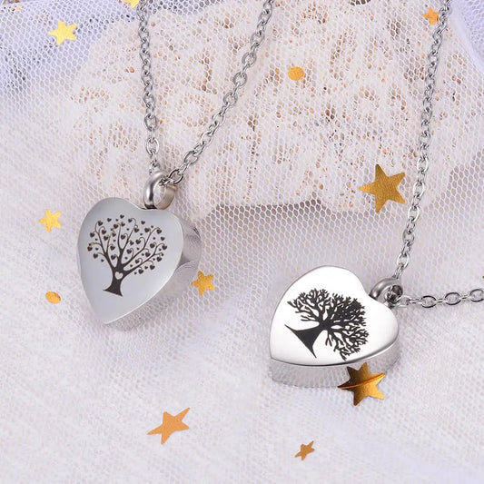 生命の木刻印のハート型ペンダント カスタム刻印 遺灰メモリアルネックレス