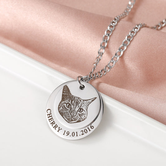 愛犬・愛猫・うちの子の写真レーザー刻印 カスタムネックレス ダブルコインタイプ