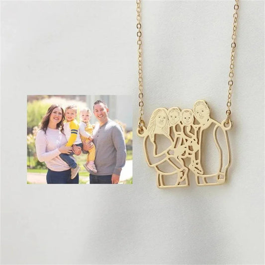 家族やカップルの写真切り抜きスタイル 高精度のキーホルダー/ネックレス