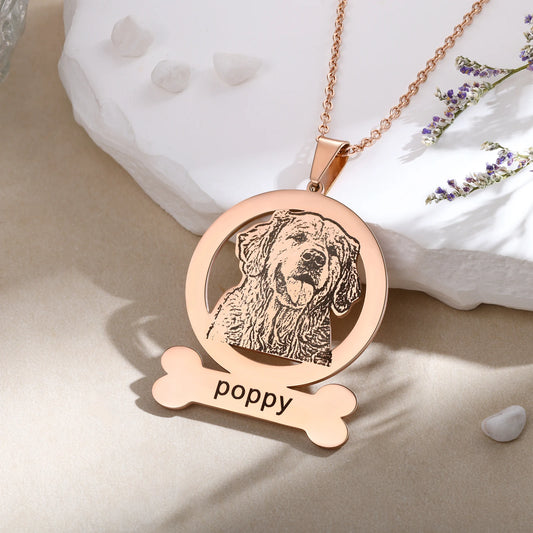 ペットの写真と名前 刻印ラウンドとボーンスタイルネックレス|ペット写真で作る特別なギフト