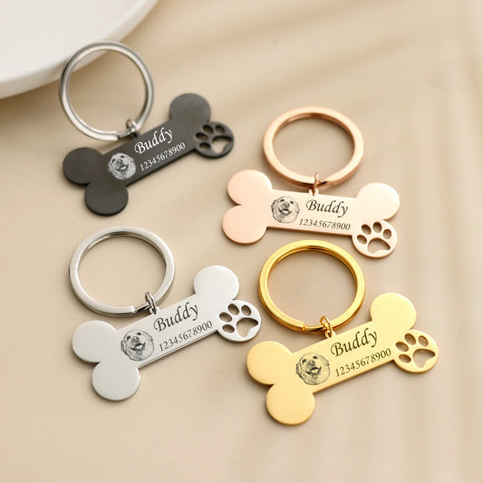 愛犬・愛猫・ペットの顔写真&名前刻印OK|ボーン型オリジナルカスタムネームタグ