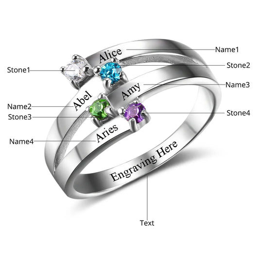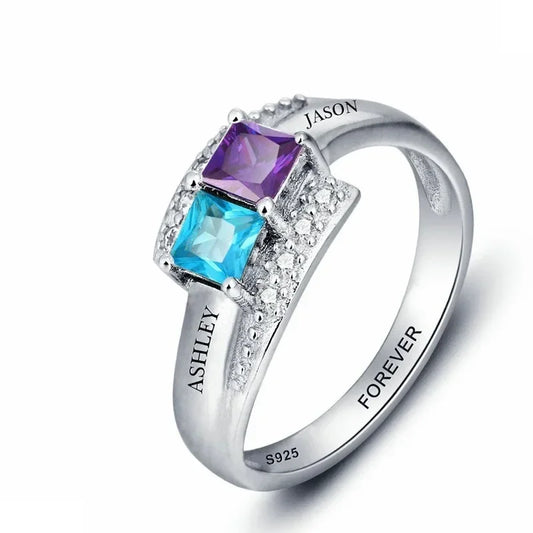 【2連デザイン】誕生石 名入れ リング |シルバー925