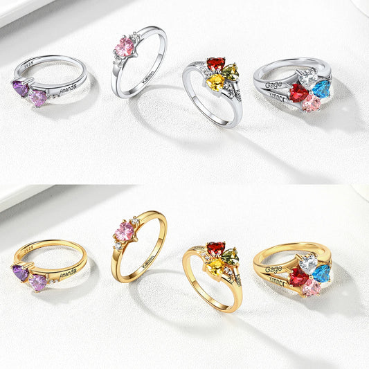【シルバー925】ハート 誕生石 1〜4石 名入れ リング |オーダーメイド キュービックジルコニア 指輪