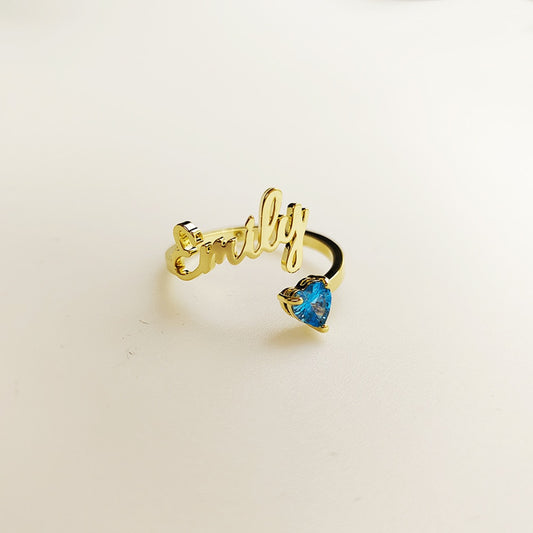 誕生石入りカスタムネーム切り抜き オープンリング 指輪