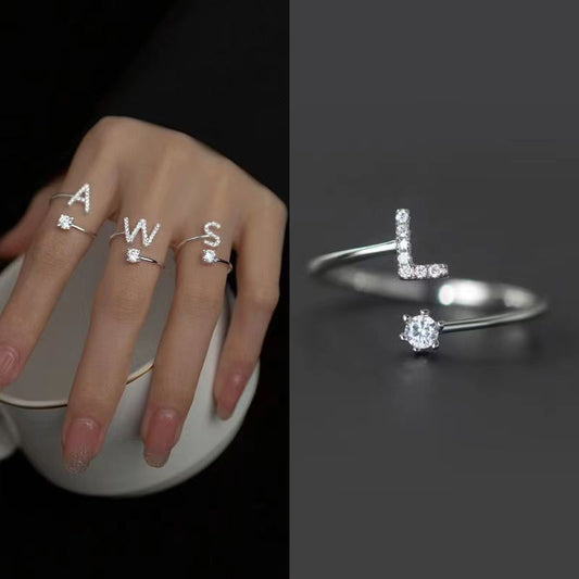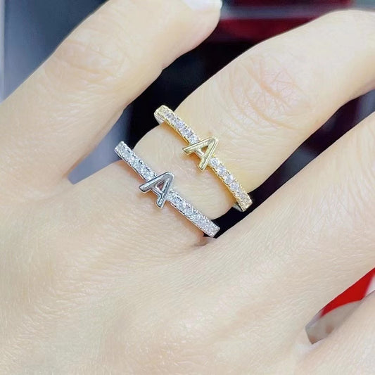 キュービックジルコニア クリスタル輝くイニシャル リング指輪