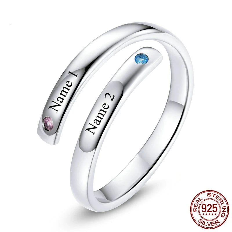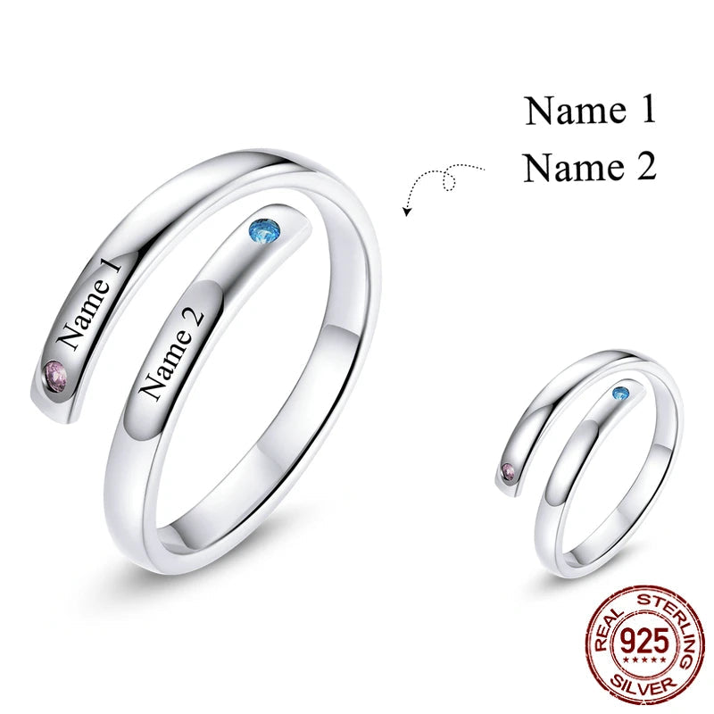 【2連デザイン】誕生石 名入れ リング |シルバー925